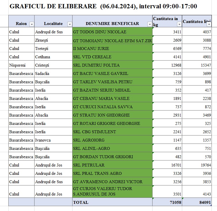 GRAFICUL de eliberare a ajutorului umanitar extern (motorină) pentru data de 6 aprilie 2024